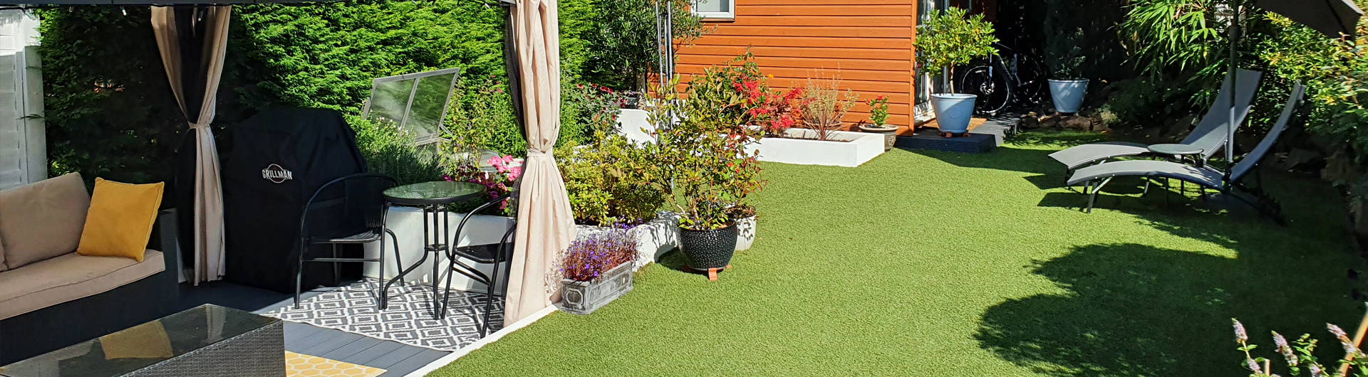 A luxurious 40mm Artificial Grass, 2&4m width, 2160 grams per metre weight.